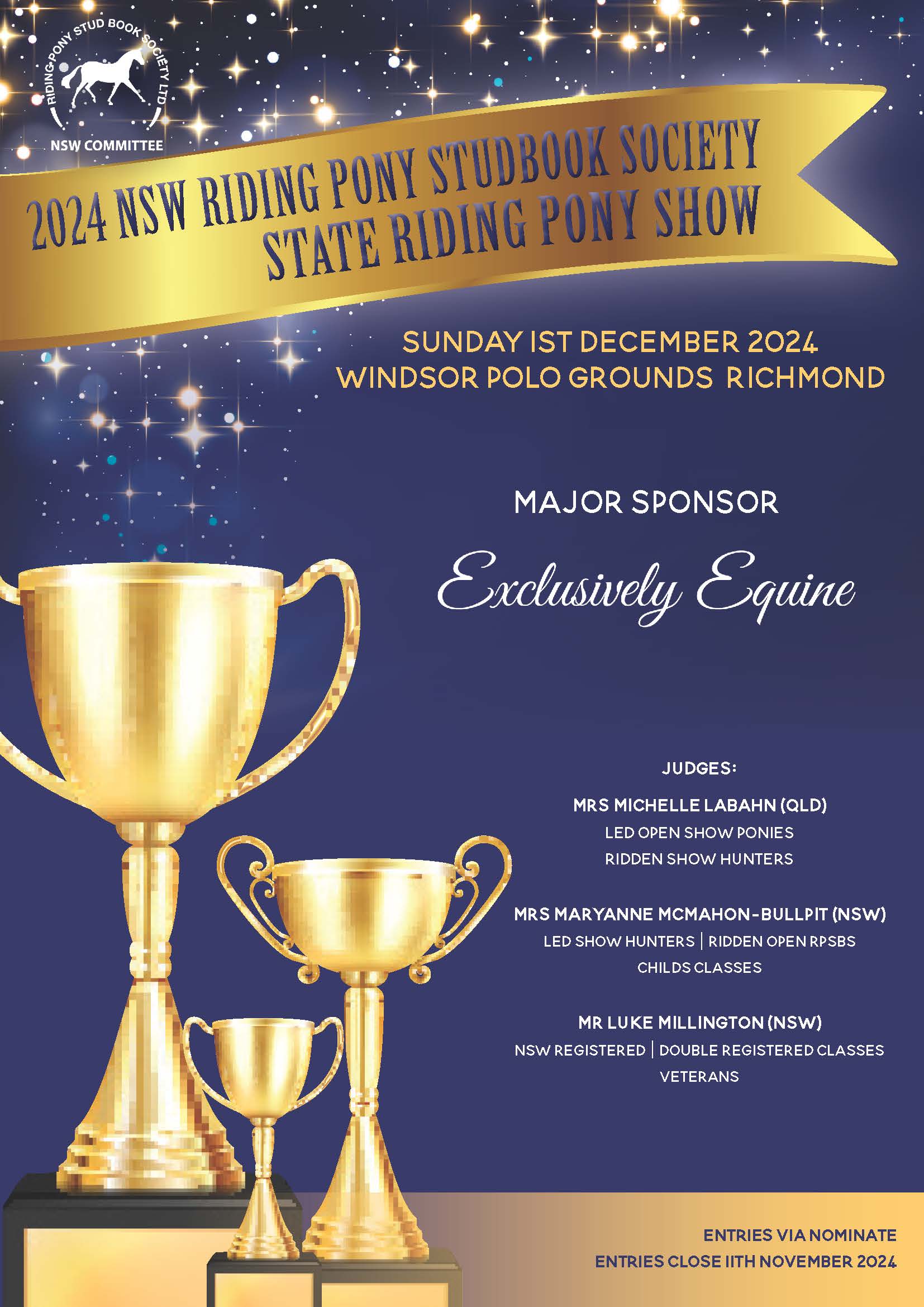 Work is well underway for this show and we will begin making announcements very soon. The celebration of 50 Years of Riding Ponies in Australia is a very important milestone indeed and there will be really exciting showing, sponsorship and participation options available to our members and the wider equestrian industry.
